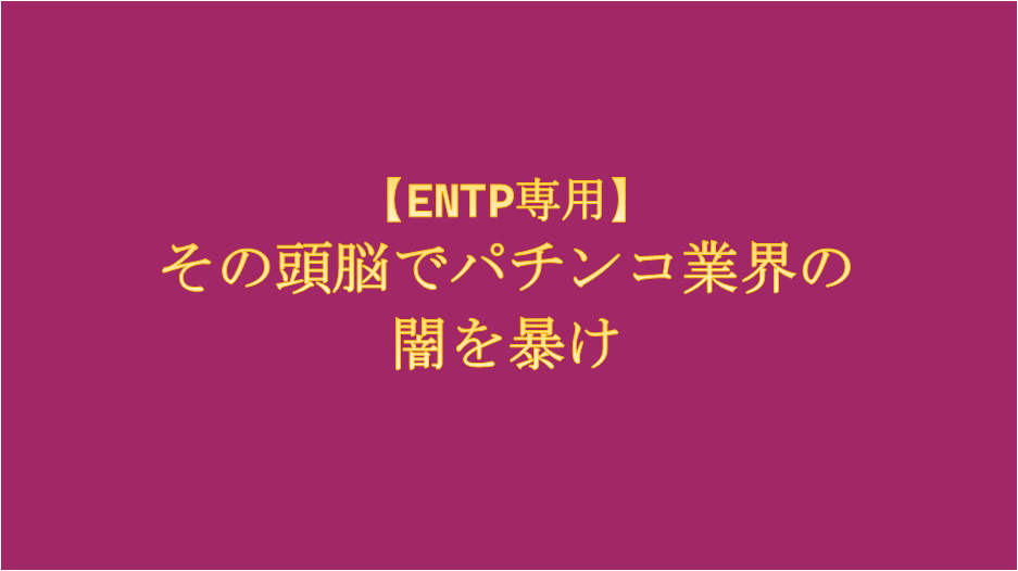 ENTPの最大の才能は、本質を見抜いた瞬間に「飽きる」ことです。パチンコ台の前でハンドルを握り続ける単調な作業は、本来のあなたには耐え難い苦痛のはず。そのエネルギーを、もっと世界を揺るがす知的戦場へ転送すべきです。