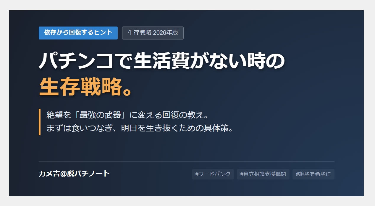 パチンコや競馬で生活費を使い果たし、死ぬことすら考えているあなたへ。まずは「食いつなぐ」ことから始めてください。でも、それは惨めなことではありません。その絶望は、いつか必ずあなたの「最強の武器」に変わります。
