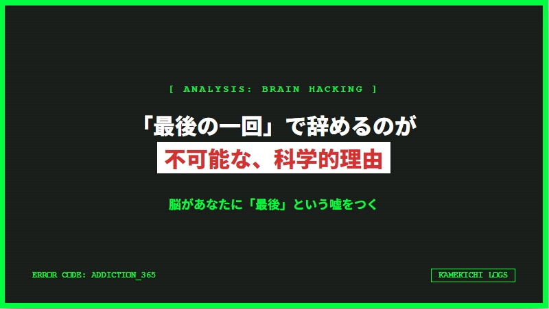 そう誓って、あなたは何度あのホールへ向かいましたか?あなたが辞められないのは意志が弱いからではありません。脳があなたに「最後」という名の嘘をついているからです。